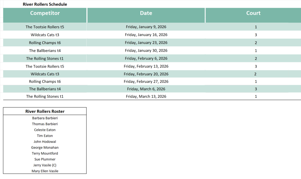 League Schedule – Match Scores – Team Standings – Captains – Participants